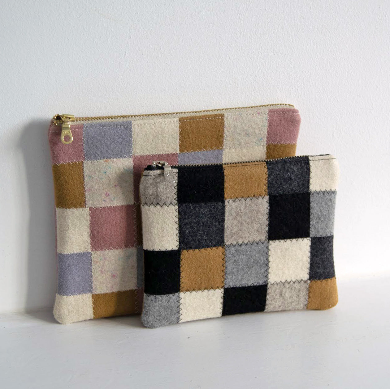 Checkered Wool Zip Pouch - Pastel