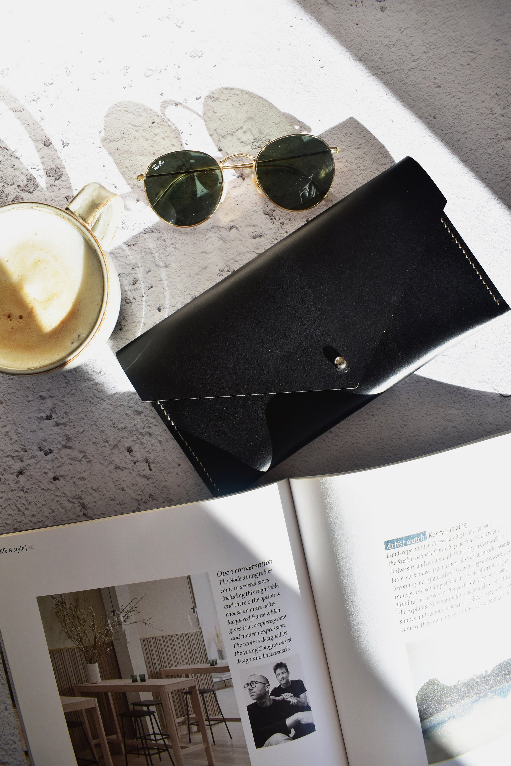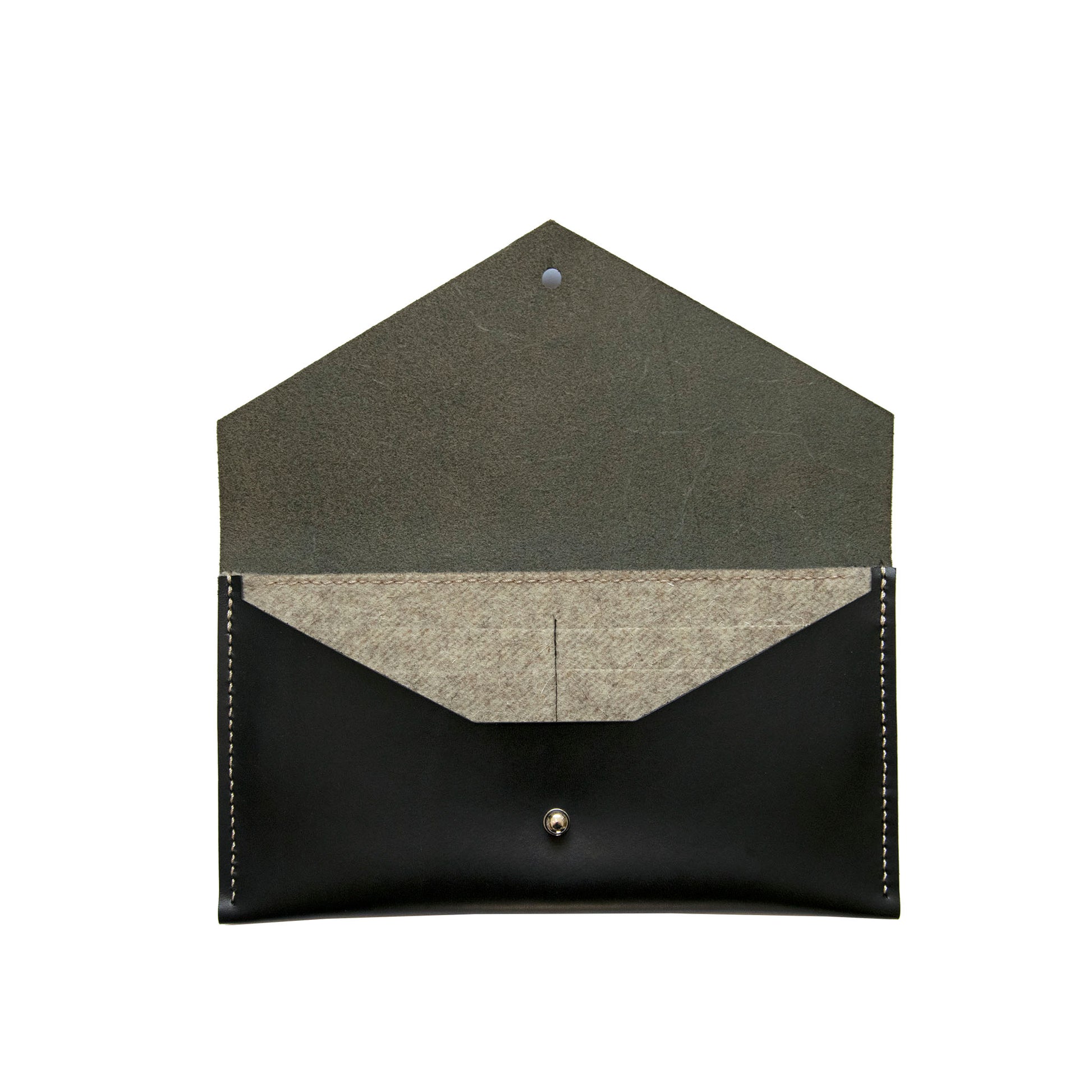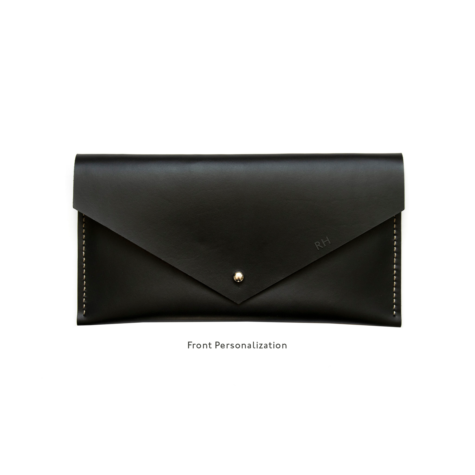The elegant and sleek handstitched Italian vegetable tanned leather clutch wallet is a large, envelope style wallet that can also be worn on its own as a clutch. The clutch wallet is a versatile piece that will take you from day to night with 4 card slots (that can hold 2 cards each), 1 cash slot inside and room for your phone inside. The wool interior creates a contrasting pop of color and texture while keeping your items safe and secure. Can also be used as a travel wallet and fits a passport and boarding pass.