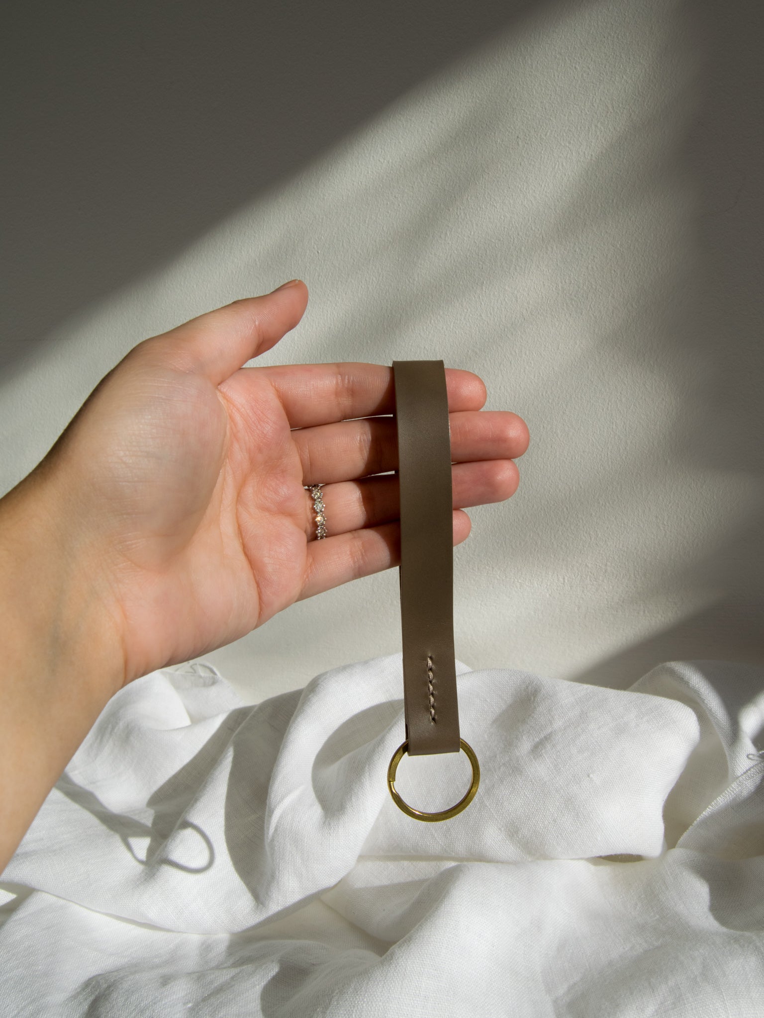 The warm, versatile taupe leather offers effortless sophistication that complements any style, while the practical loop design makes carrying keys (especially when your hands are full) and finding them in your bag a more pleasant experience!