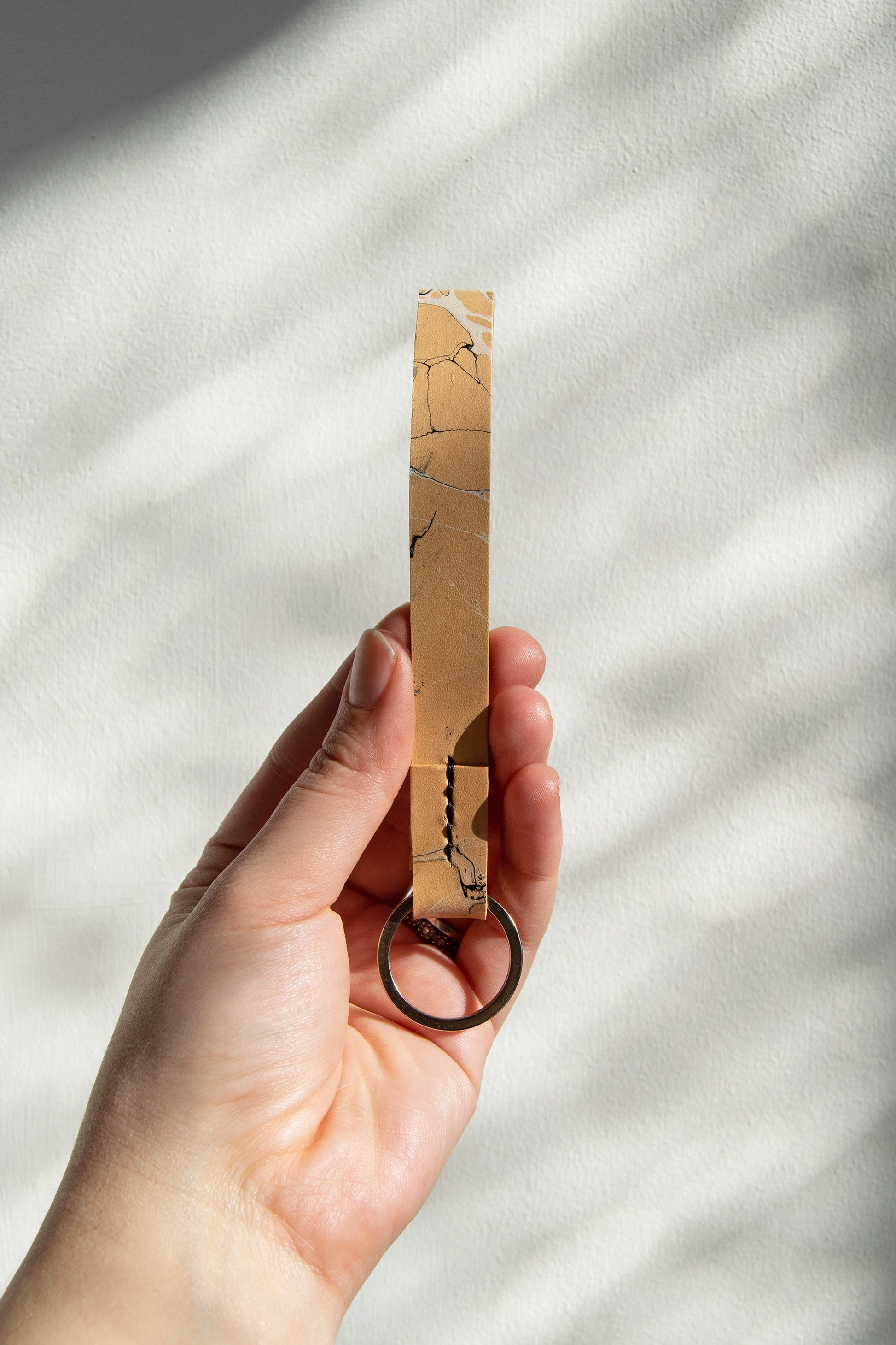Premium Materials & Craftsmanship: This black and white marbled key fob with black stitching is handcrafted from premium natural vegetable tanned leather featuring a classic hand-painted marbled design with distinctive contrast stitching that complements any style. Each piece is meticulously handstitched and will age beautifully developing a rich patina with everyday use. The thoughtful loop design provides both comfort and functionality, making your keys a pleasure to handle.