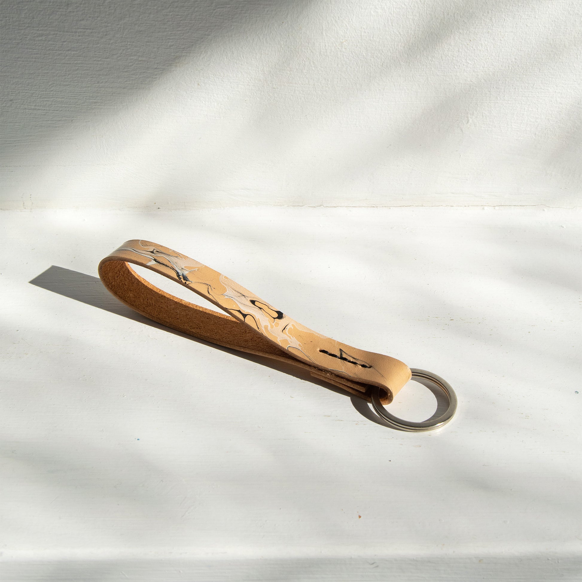 Marbled Leather Key Fob - Black & White, Black Stitch