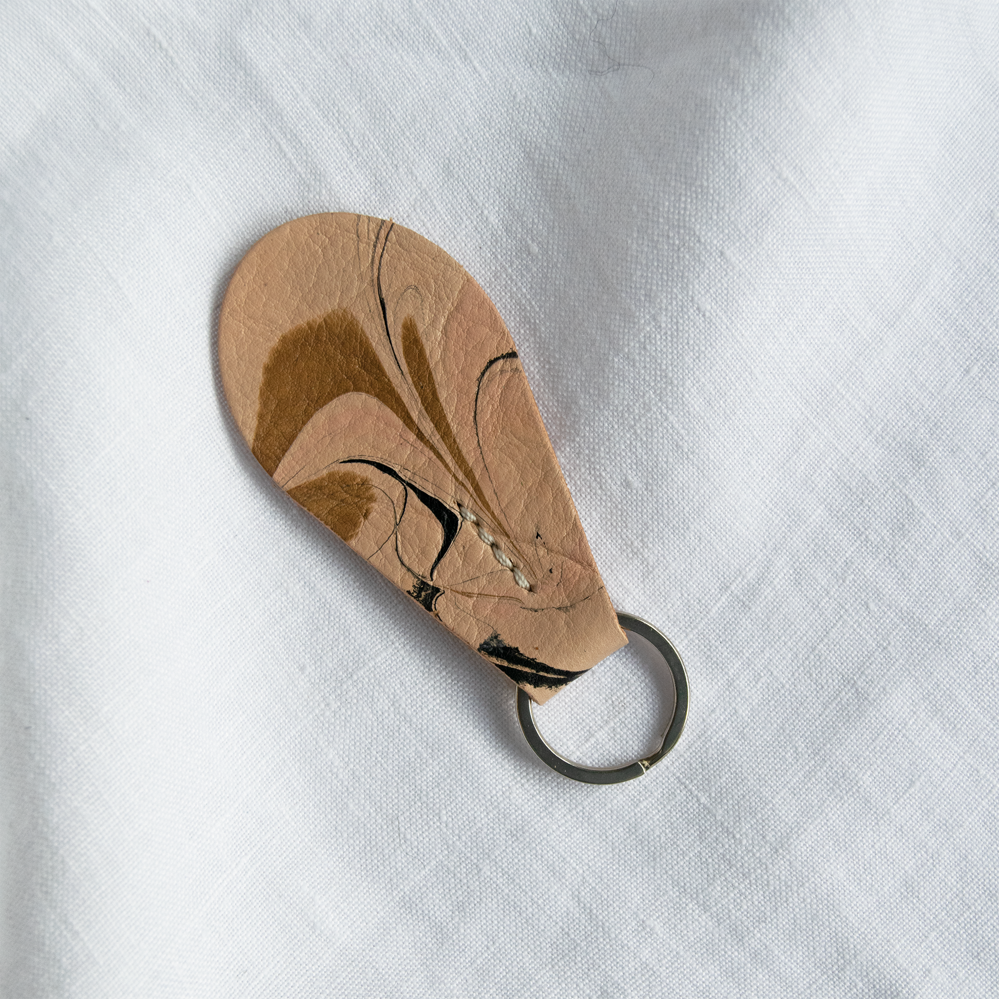 Marbled Leather Teardrop Key Fob - Brown, Blush, Black