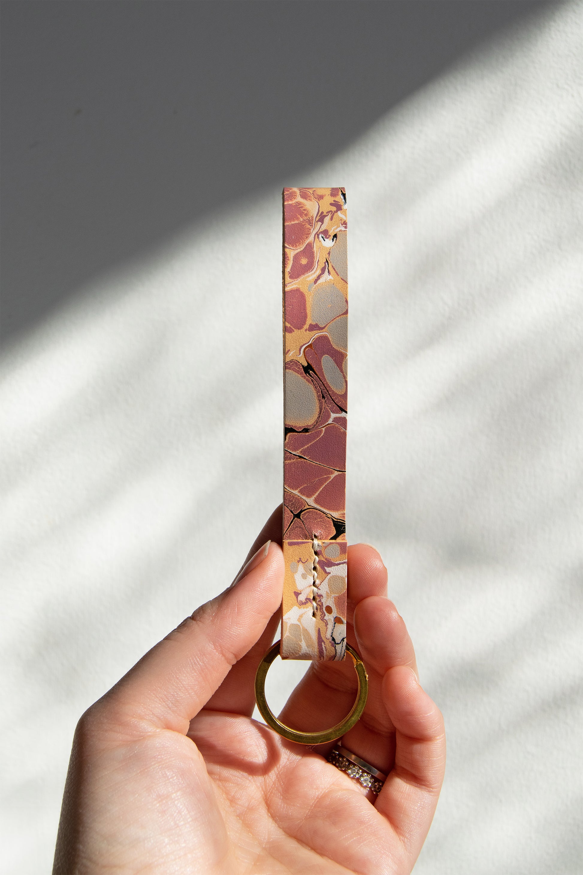 Premium Materials & Craftsmanship: This multi-color stone marbled key fob is handcrafted from premium natural vegetable tanned leather featuring a hand-painted marbled design. Each piece is meticulously handstitched and will age beautifully developing a rich patina with everyday use. The thoughtful loop design provides both comfort and functionality, making your keys a pleasure to handle.