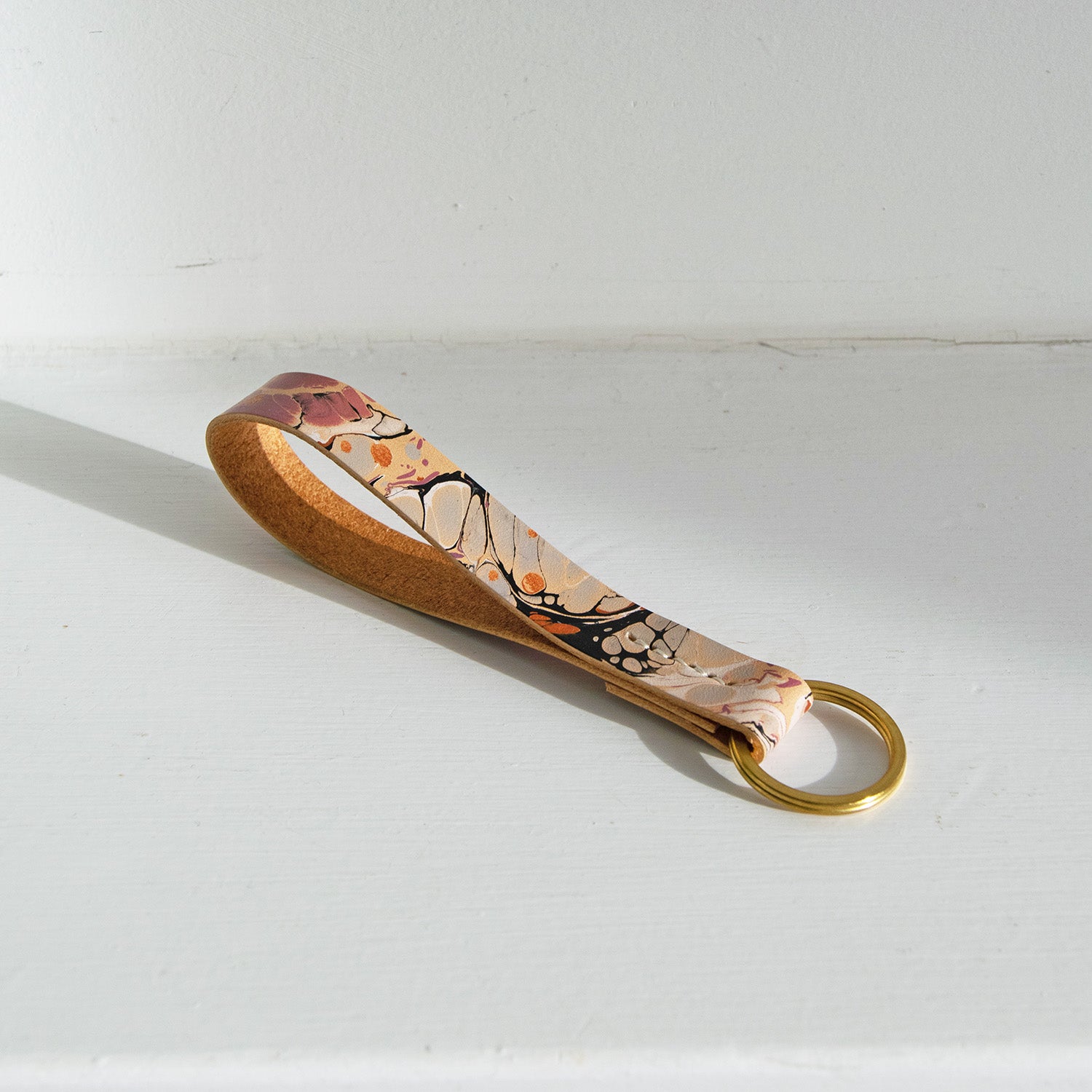 Marbled Leather Key Fob - Multi-Color Stone