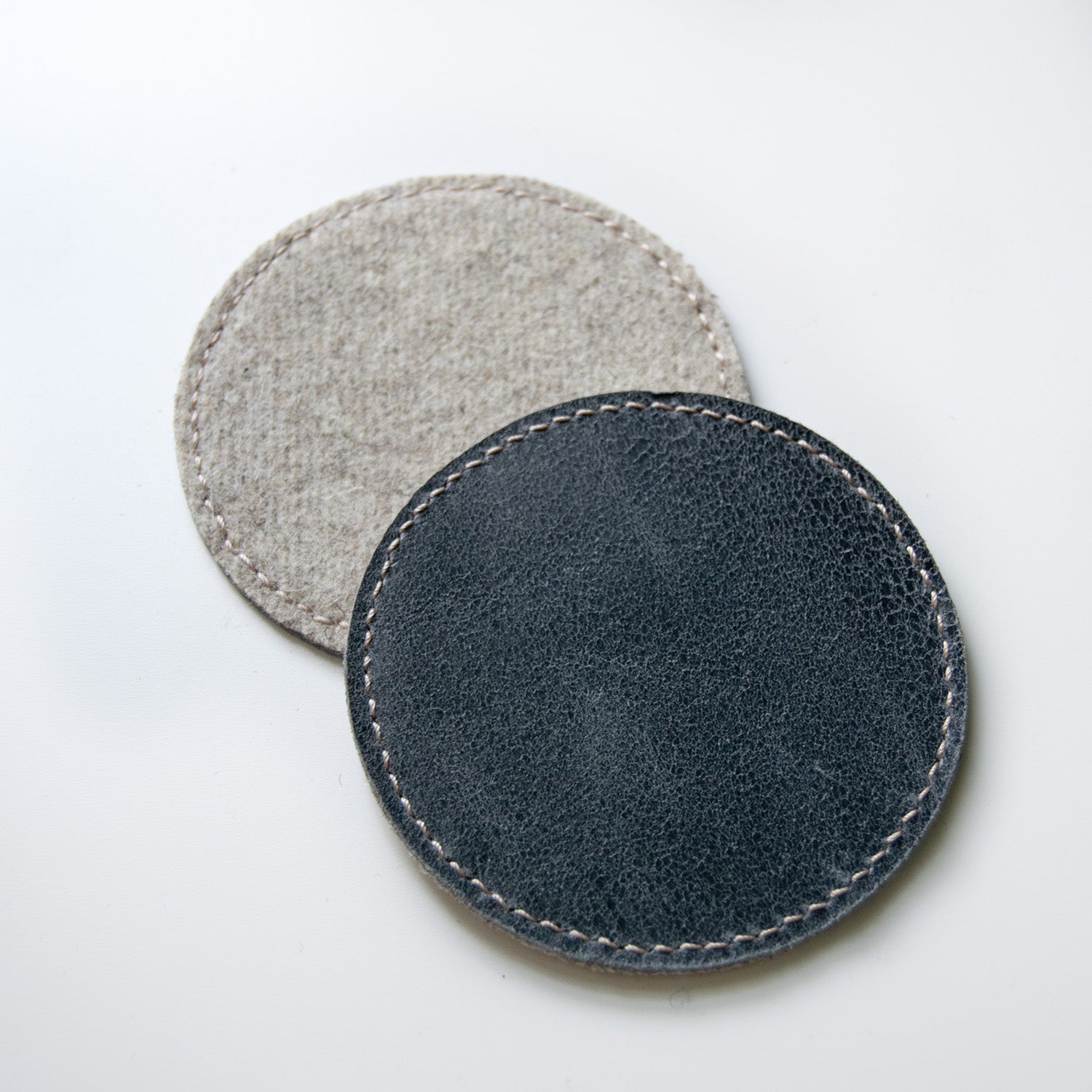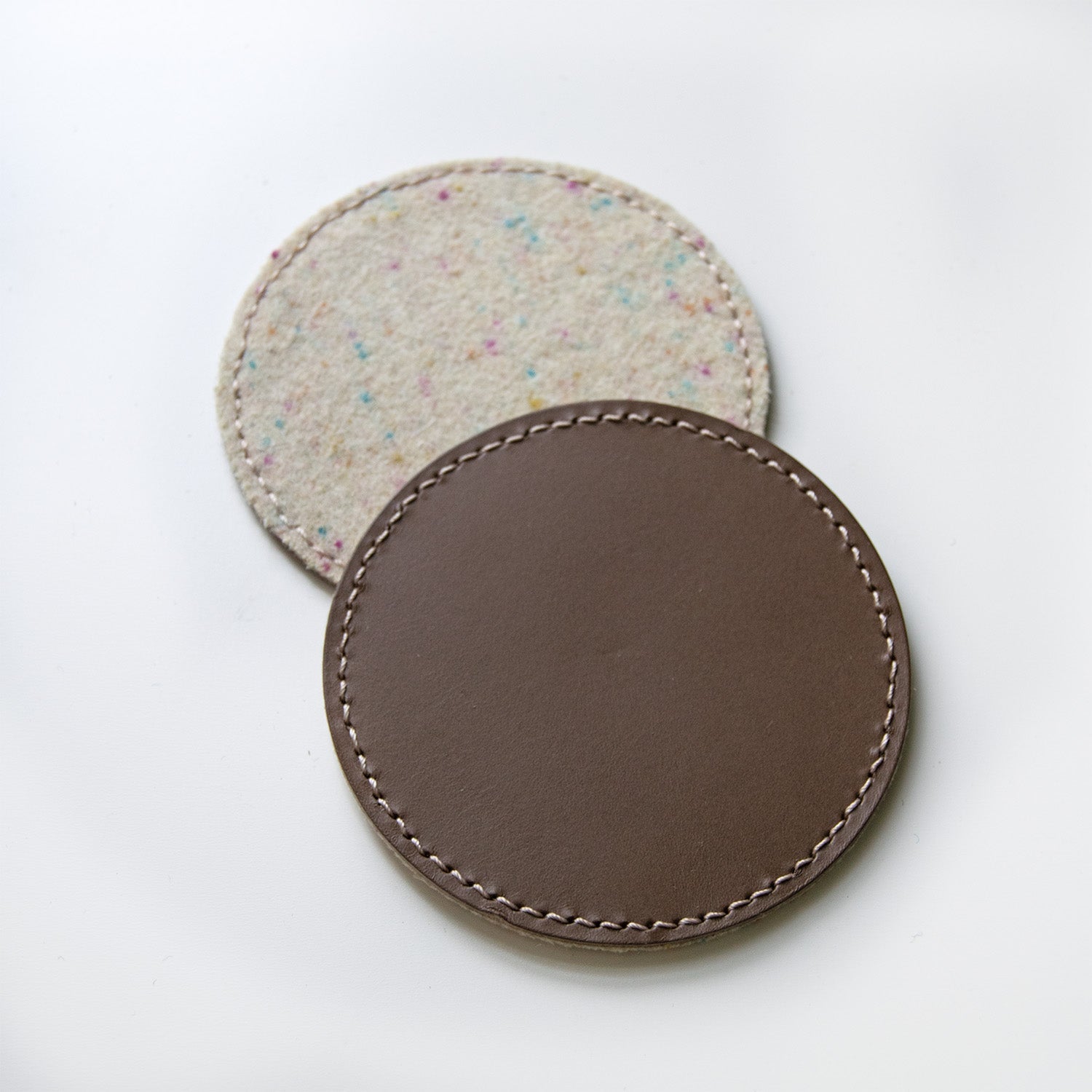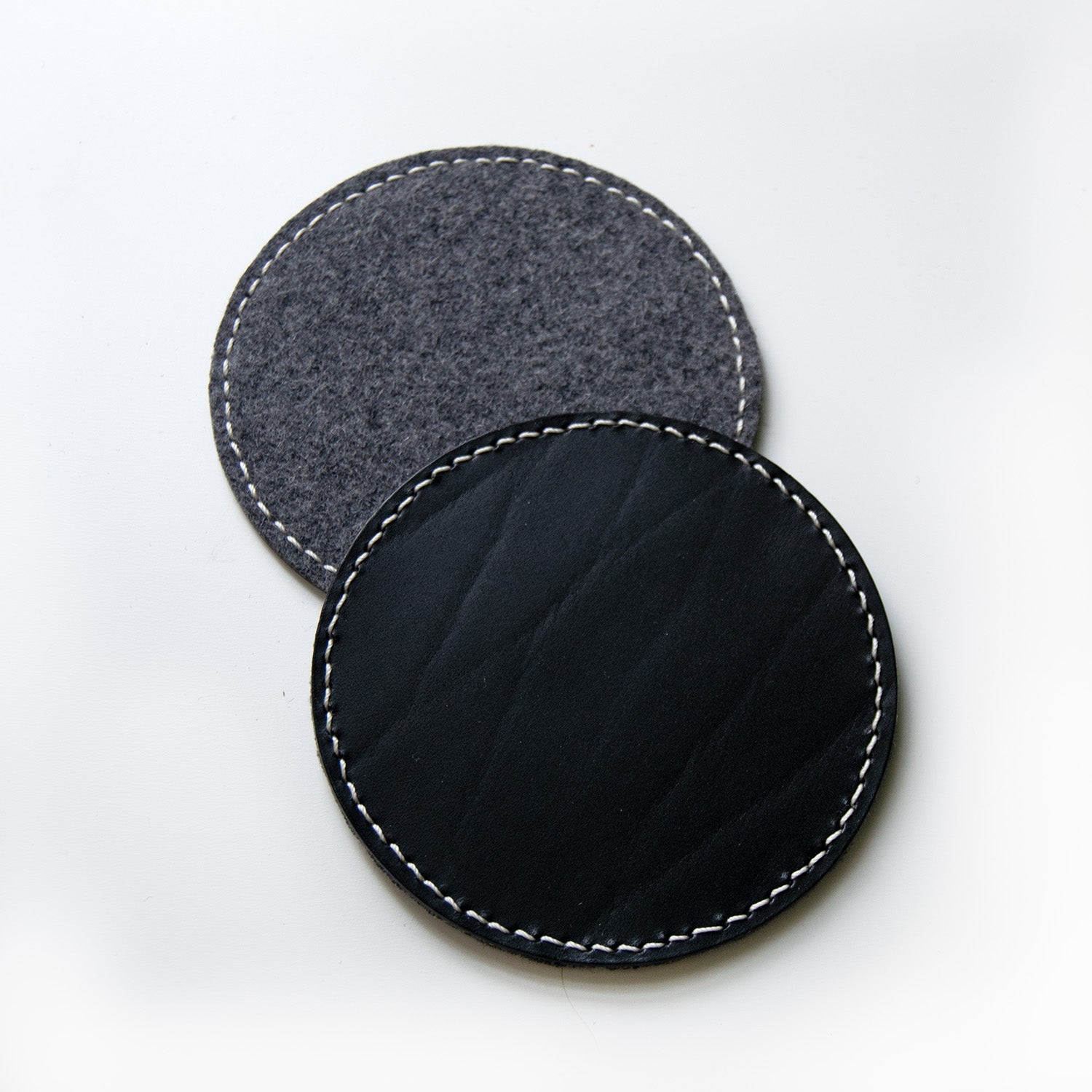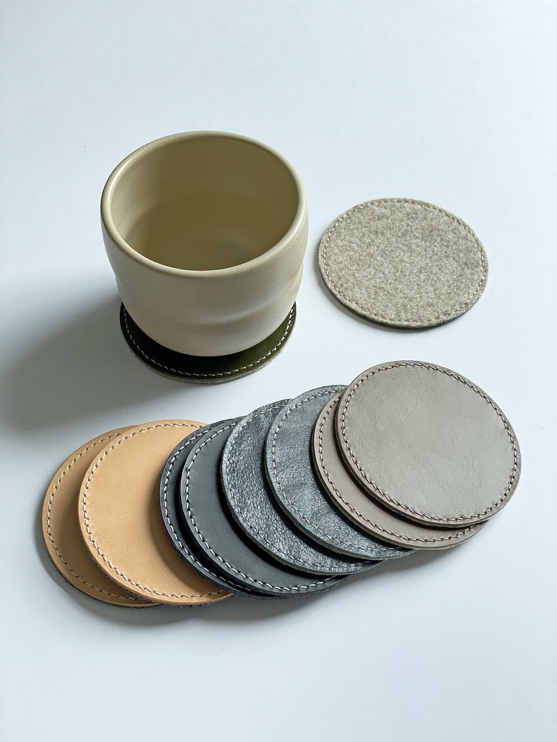 The handstitched, dual-sided leather and wool coasters brings artisanal craftsmanship and thoughtful functionality to your entertaining and home decor. The reversible construction transforms simple coasters into beautifully practical accessories that protect both your furniture and your glassware.