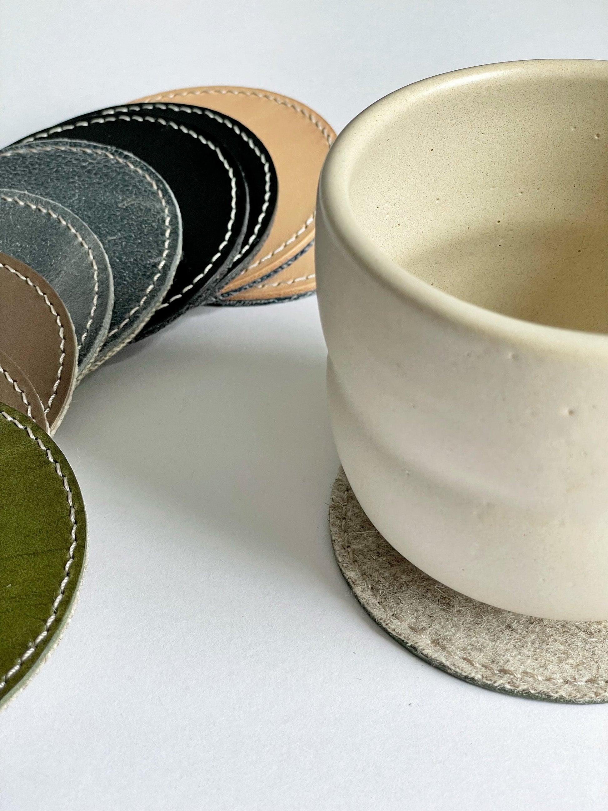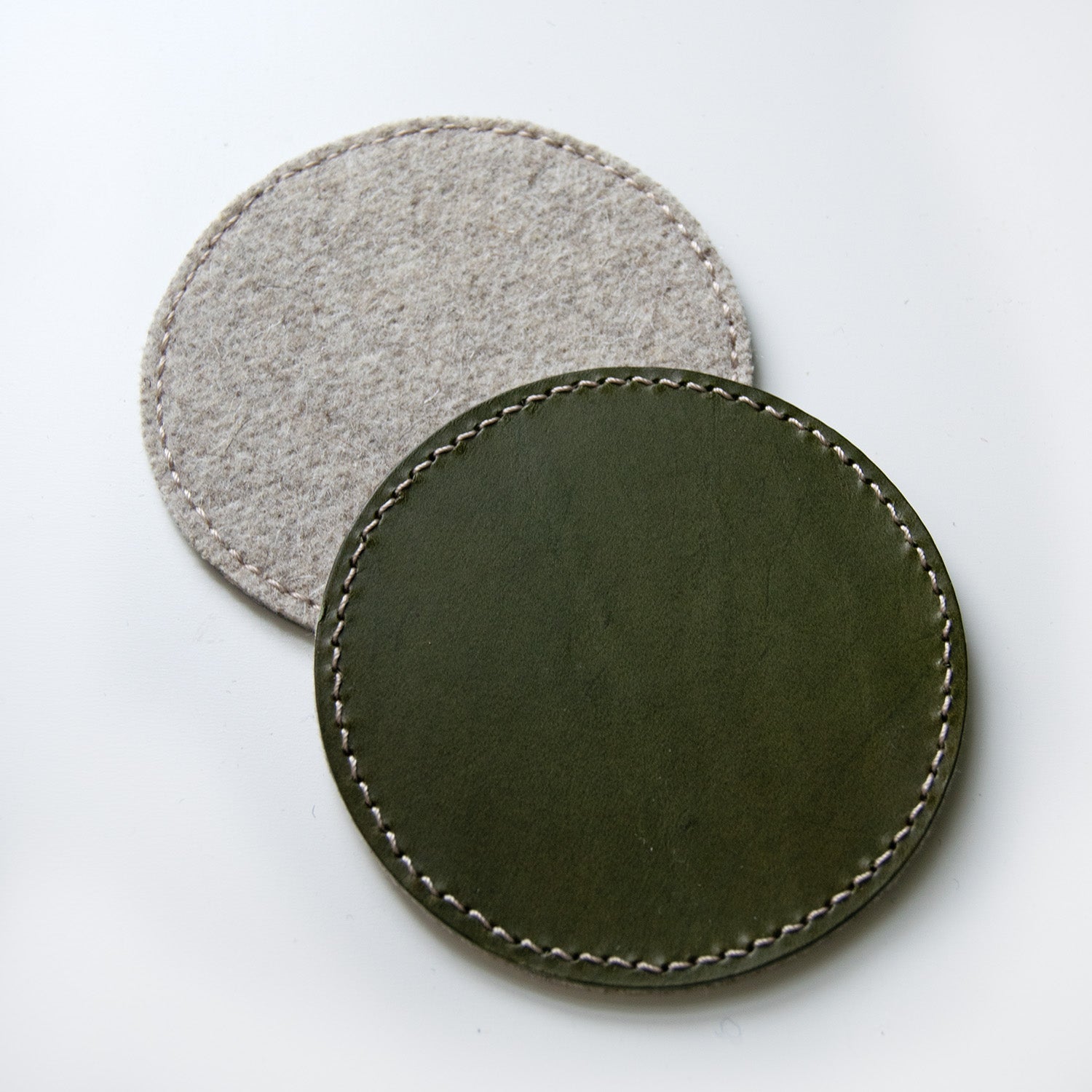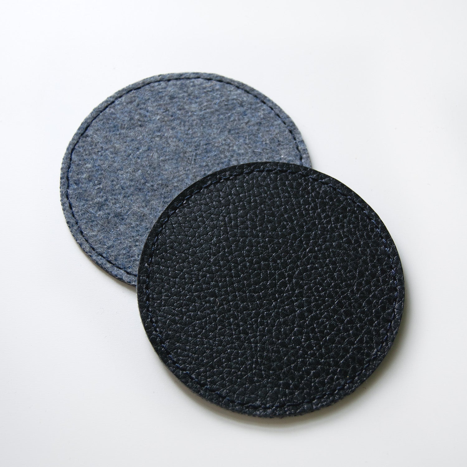 The handstitched, dual-sided leather and wool coasters brings artisanal craftsmanship and thoughtful functionality to your entertaining and home decor. The reversible construction transforms simple coasters into beautifully practical accessories that protect both your furniture and your glassware.