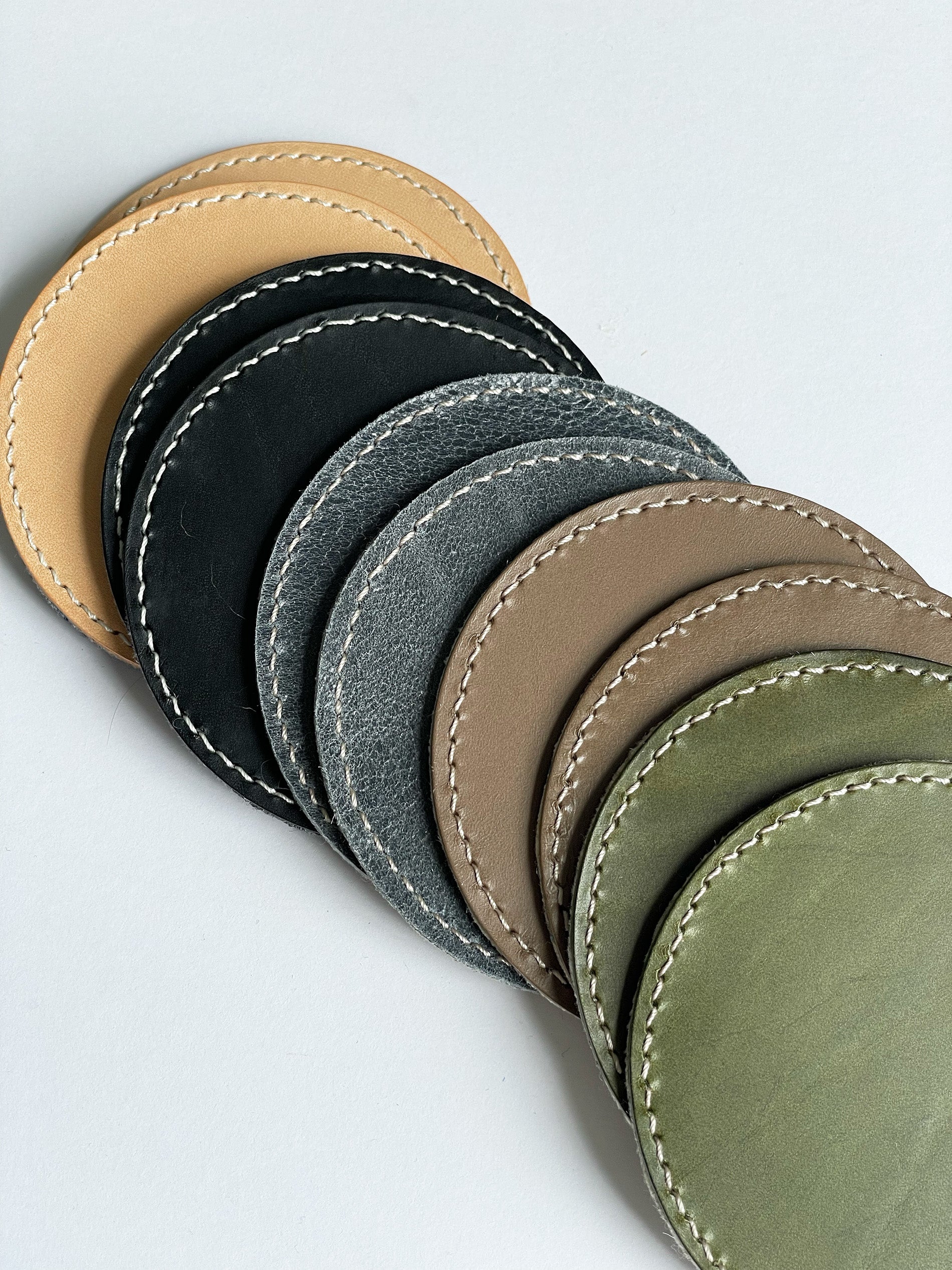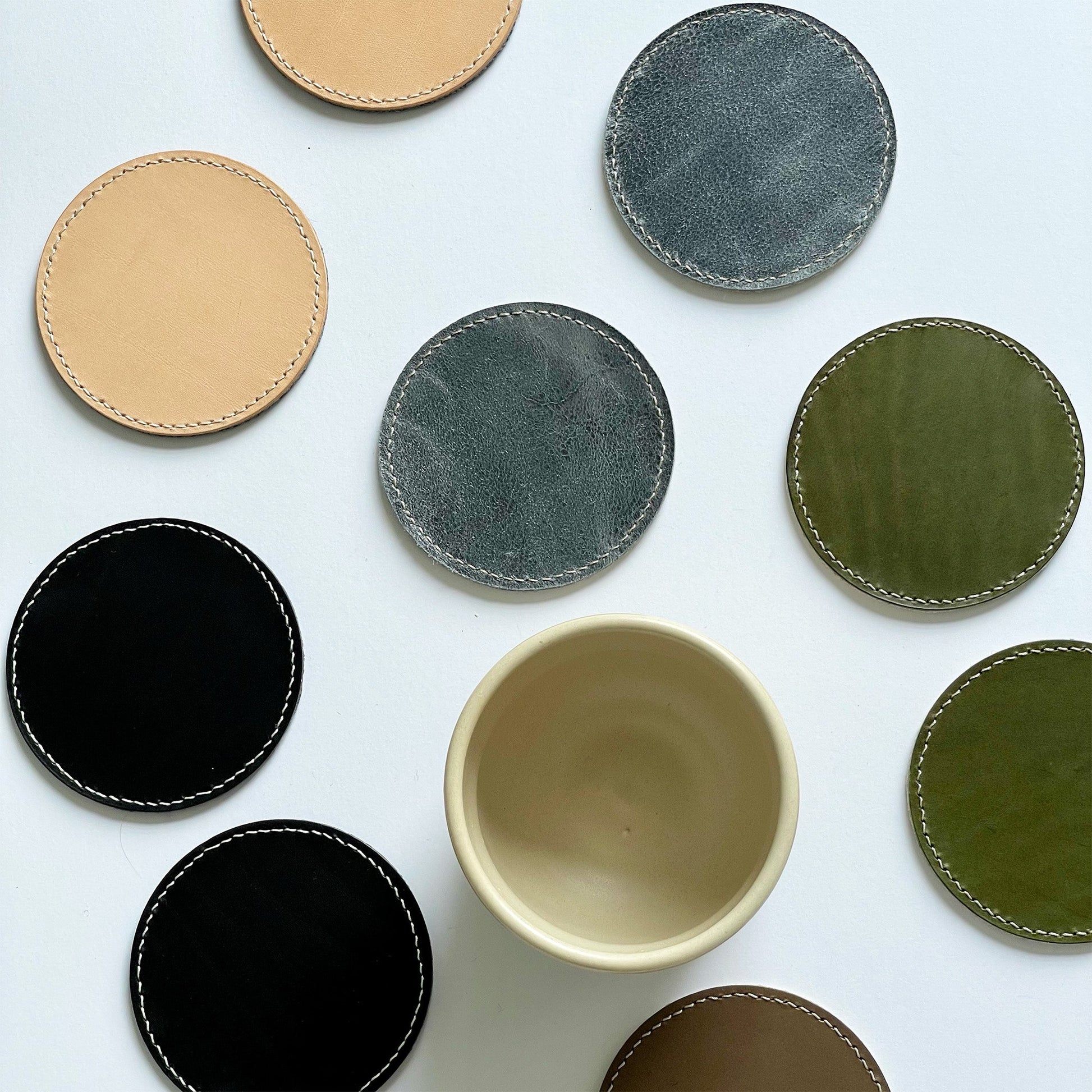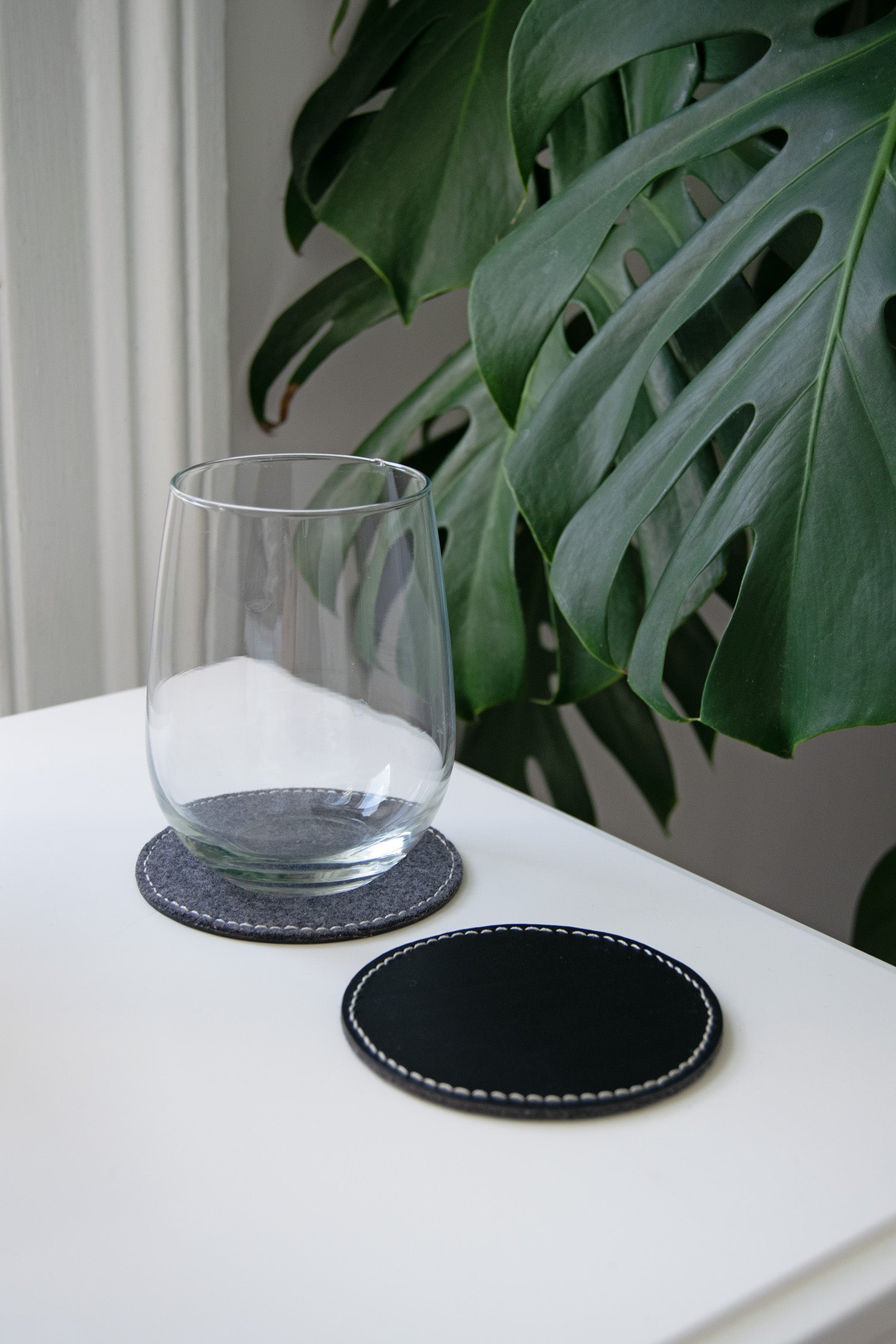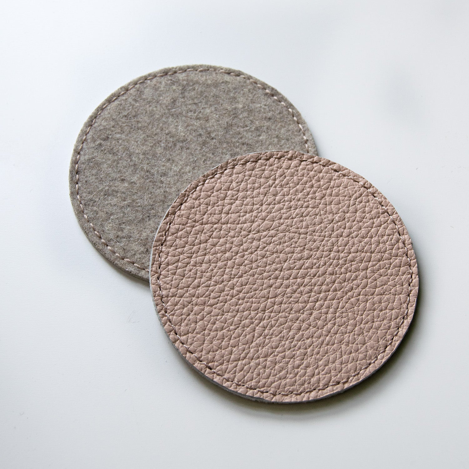 The handstitched, dual-sided leather and wool coasters brings artisanal craftsmanship and thoughtful functionality to your entertaining and home decor. The reversible construction transforms simple coasters into beautifully practical accessories that protect both your furniture and your glassware.