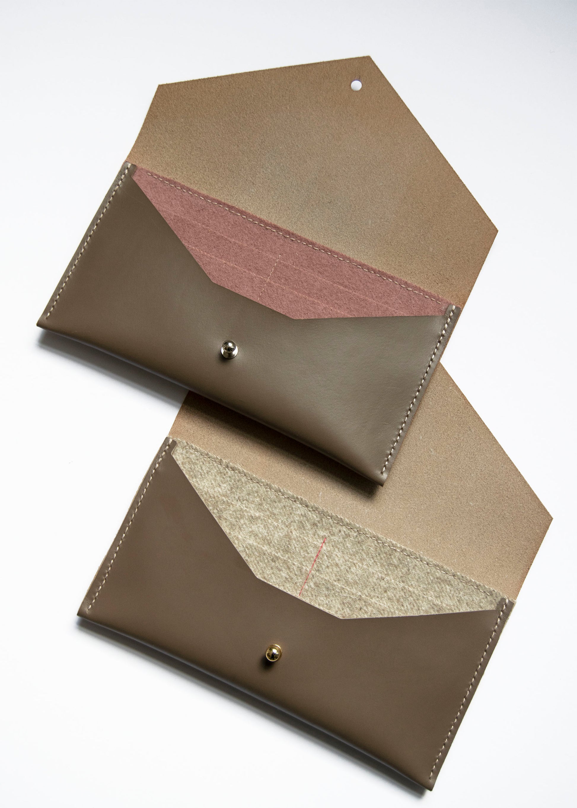 The elegant and sleek handstitched Italian vegetable tanned leather clutch wallet is a large, envelope style wallet that can also be worn on its own as a clutch. The clutch wallet is a versatile piece that will take you from day to night with 4 card slots (that can hold 2 cards each), 1 cash slot inside and room for your phone inside. The wool interior creates a contrasting pop of color and texture while keeping your items safe and secure. Can also be used as a travel wallet and fits a passport and boarding pass.