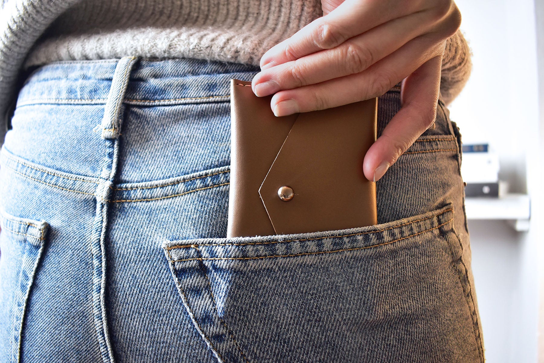 - Slim profile fits seamlessly in your front pocket or small handbag